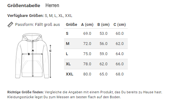 Gerne bieten wir Euch die Möglichkeit, den Hoodie bei uns vor Ort in Goch anzuprobieren und abzuholen (keine Lieferung).