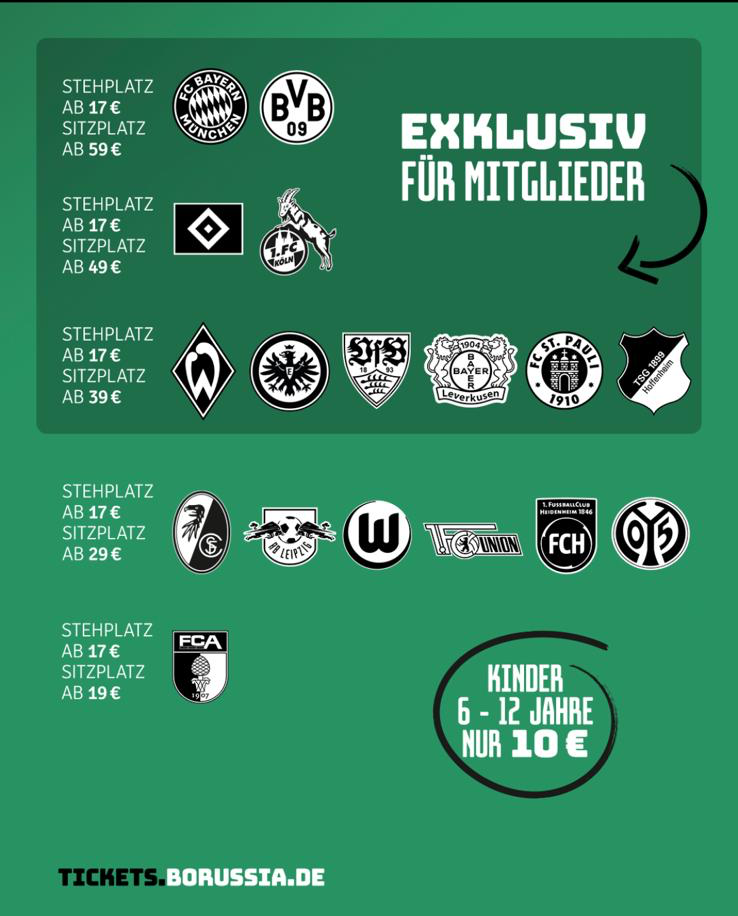 Ab Samstag, 19. Juli, 8 Uhr haben wir als offiziell registrierter Fanclub bei Borussia die Möglichkeit, Tickets für alle Heimspiele der Saison (Hin- und Rückrunde) zu bestellen, bevor Borussia ab 10 Uhr bereits mit dem Mitglieder-VVK beginnt.